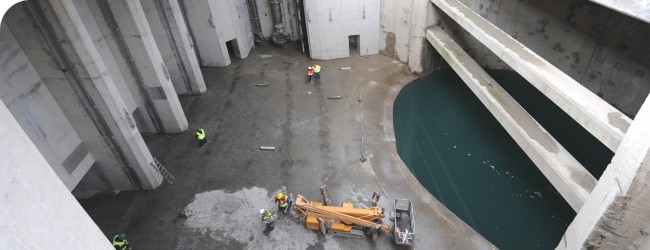 Fin juillet, après les travaux de finition dans le tunnel, les équipes de BRS ont définitivement fermé la galerie de recul, au fond du puits, qui servait au dégagement des trains suiveurs lors du creusement du tunnel. Puis, elles ont procédé à l’enlèvement des équipements nécessaires en phase de travaux : escalier, ascenseur, gaine de ventilation… Déséquipés, le puits et le tunnel étaient prêts à être mis en eau. Cela nécessite plusieurs étapes comme l’explique Gilles Broll, directeur de projet chez Bessac. « Nous avons commencé le remplissage en eau du tunnel et du puits le 14 août dernier. C’est une opération délicate qui consiste à pomper de l’eau dans l’avant-port ouest grâce à des pompes placées sur radeau. Ces pompes sont alimentées en énergie par des groupes électrogènes et un système doseur de chlore est connecté à la conduite de refoulement de ces pompes. Nous sommes en effet obligés de traiter l’eau que nous pompons afin d’éviter la prolifération de la flore et des bactéries qui pourraient altérer les résultats du test de performance auquel nous allons procéder une fois les pompes d’alimentation des ORV en service ». Au total, ce sont plus de 52 000 m3 d’eau qui ont été pompés et déversés dans le tunnel et les puits, en deux étapes : pompage jusqu’à un premier niveau, juste en-dessous de la dalle du second puits (station de pompage), arrêt pour laisser terminer les travaux de couverture des puits, puis pompage jusqu’à un second niveau déterminé, lui, en fonction des besoins du process. « Cette mise en eau est indispensable pour deux raisons : d’abord, elle sert à remplir les siphons (côté CNPE de Gravelines) et l’ensemble du système de pompage côté terminal ; ensuite, elle servira à amorcer les siphons (et le processus d’aspiration de l’eau provenant de la centrale) lors de la mise en route des pompes » commente Gilles Broll. Fin août, cette mise en eau était terminée. La prochaine opération consistera à amorcer le process, avec siphonage de l’eau dans le bassin de rejet des différentes tranches de la centrale nucléaire de Gravelines et ainsi mettre en route le système de réchauffement du GNL. Le remplacement de l’eau préalablement introduite dans le tunnel ne prendra qu’une heure et demi et à ce moment (et seulement à ce moment), cela permettra de réaliser les tests afin d’être certains que l’installation est prête à fonctionner normalement. Le tunnel et le puits seront alors officiellement mis en service.