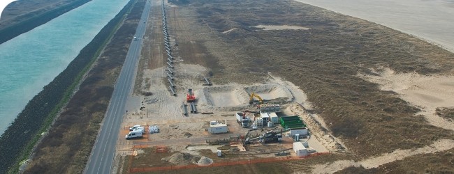 Cette canalisation de 17 km de long servira à connecter le gaz naturel venant du terminal à l’ensemble du réseau français et, au delà, nord-européen. Le 4 mars dernier, les premiers tubes, d’une longueur moyenne de 17 mètres, ont été livrés, puis assemblés par soudage. Le chantier est ensuite entré dans une phase très délicate puisqu’il s’agissait de faire passer la canalisation sous le canal des Dunes. « A cet endroit, la canalisation est posée à 30 mètres de profondeur », précise Nicolas Witter. « Cette technique de forage dirigé consiste à percer un premier trou pilote, dont nous avons empêché le rebouchage immédiat par injection de bentonite en continu. Puis nous avons agrandi ce trou par l’intérieur pour qu’il arrive à un diamètre de 1 300 mm. C’est là qu’est ensuite placée la canalisation sur une longueur de 550 mètres et à une profondeur de 30 mètres». Le forage sera terminé le 19 avril. Tous les tubes constituant la canalisation seront soudés et tirés à l’intérieur du tunnel. « L’ensemble de la manœuvre durera près de trois semaines mais nous n’avons pris aucun retard sur les délais et tout se passe en conformité et sécurité », se réjouit Nicolas Witter.
