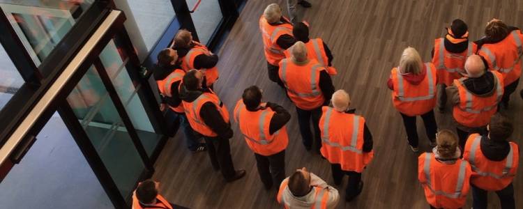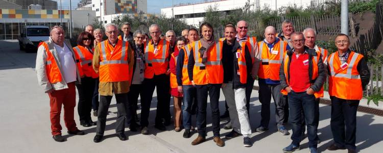La présentation orale de l’équipement est suivie par le visionnage d’un film qui montre l’interaction entre les différents métiers lors de la réception d’un méthanier : pilote, rondier, tableautiste, responsable commercial, remorquage… Et puis arrive ce pourquoi ils sont tous venus : la visite du terminal, gilet orange sur le dos et badge d’accès « visiteurs » autour du cou : La salle de commande d’abord avec une intervention très appréciée du chef de quart sur l’ensemble des missions de son équipe et puis, en bus, une visite commentée de l’équipement, sous une pluie battante et beaucoup de vent : les trois cuves, les regazéificateurs, le tunnel par lequel arrive l’eau tiède de la centrale nucléaire et enfin, l’appontement. Les questions sont nombreuses, précises, intéressées et l’on sent les visiteurs très largement impressionnés par la dimension de l’ensemble. Michel et Pierre ouvrent de grands yeux, peu habitués à voir de si près des équipements portuaires. Quant à Martine et Christian, ils repartent ravis de cette visite qui « leur permettra de mieux expliquer le fonctionnement d’un terminal méthanier quand ils passeront devant avec leurs petits-enfants et qui leur a fait découvrir un équipement qu’ils n’imaginaient pas être si grand ».