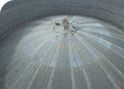 En charge de la construction des trois réservoirs, le consortium EPBY (ENTREPOSE PROJETS et BOUYGUES TRAVAUX PUBLICS) réalise actuellement une interface délicate sur le réservoir 1 : la pose de l'anneau de compression (tôle circulaire) en haut des voiles (murs) qui servira à réceptionner le dôme après levage à l'air prévu fin juin.